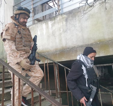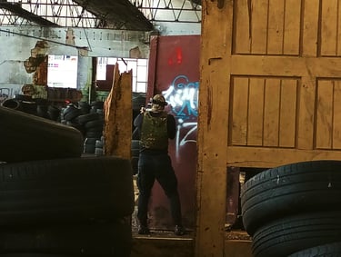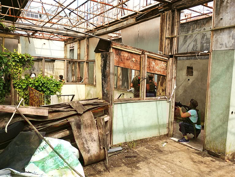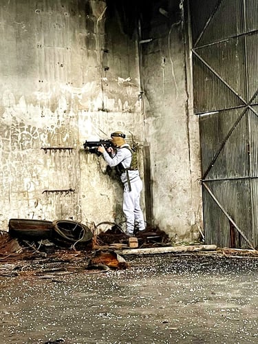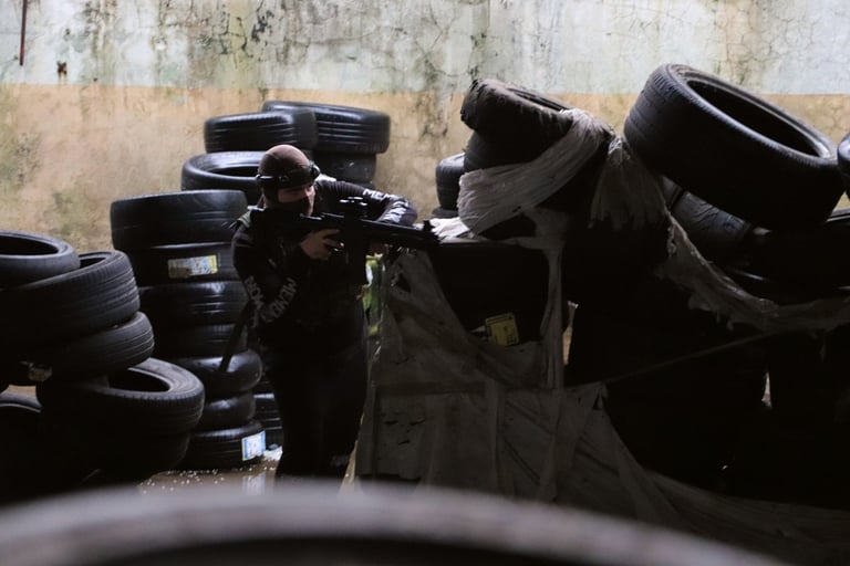 A cada buraco, frincha, esquina, há a constante ameaça de uma rajada de fogo automático !