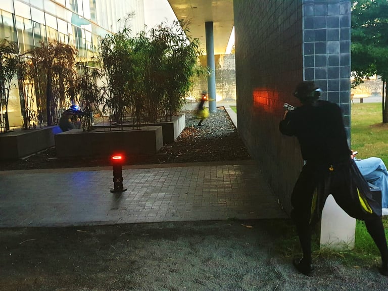 Das armas ao disparar é emitido um infravermelho, que se acertar no adversário, o sensor dele acende uma luz. Dessa forma, o jogador que acerta, sabe que acertou e pode procurar de forma mais rápida novos adversários para atingir.