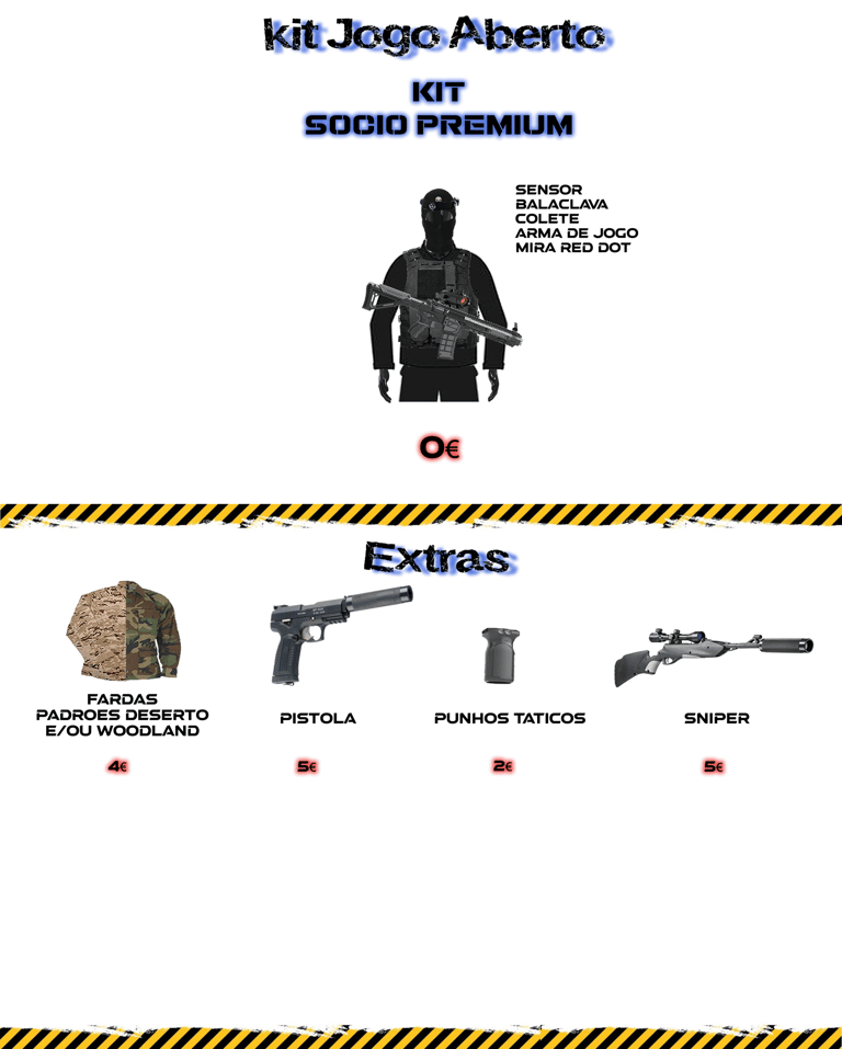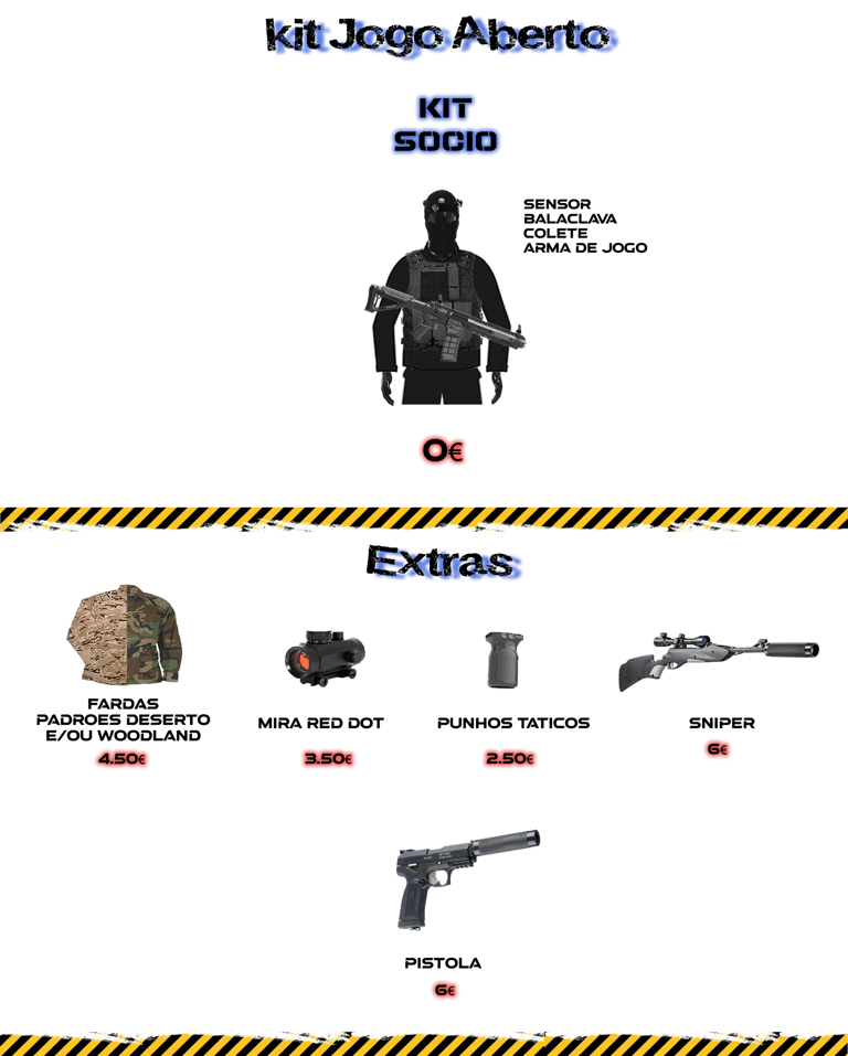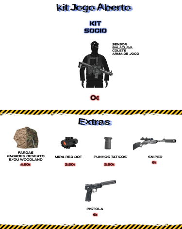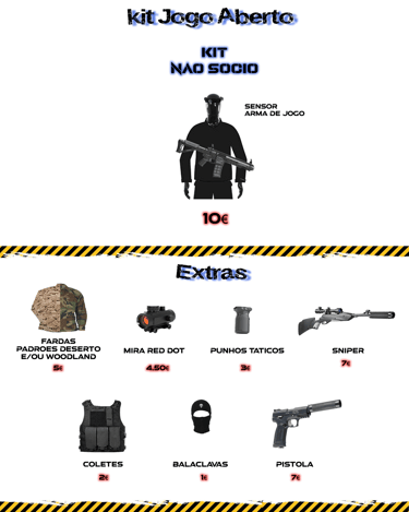Oferta de 1 Jogo Aberto gratuito por mês, com os extras de oferta, colete e balaclava.
